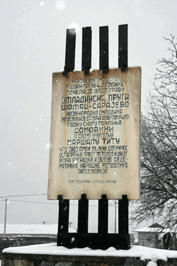 ОВОМЕ МЈЕСТУ, 1. АПРИЛА 1947. ГОДИНЕ, ПОЧЕЛА ЈЕ ДА СЕ ГРАДИ ОМЛАДИНСКА ПРУГА ШАМАЦ-САРАЈЕВО КОЈУ НАРОДНА ОМЛАДИНА ЈУГОСЛАВИЈЕ, ДАЈУЋИ ДОБРОВОЉНО РАДНУ СНАГУ, ПОКЛАЊА ДОМОВИНИ И СВОМЕ УЧИТЕЉУ, МАРШАЛУ ТИТУ КАО СВОЈ ПРВИ ВЕЛИКИ ДОПРИНОС ОСТВАРЕЊУ ПРВОГ ПЕТОГОДИШЊЕГ ПЛАНА ИЗГРАДЊЕ И ОБНОВЕ ФЕДЕРАТИВНЕ НАРОДНЕ РЕПУБЛИКЕ ЈУГОСЛАВИЈЕ |