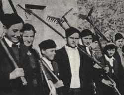 Počeci dobrovoljnog omladinskog rada Počeci omladinskih radnih akcija vežu se uz vrijeme podizanja ustanka u Drugom Svjetskom ratu. Mladi su tada, pod izuzetno teškim uslovima, radili na prikupljanju vojne opreme i municije. Još 1941. godine, u selima oko Drvara, omladina je organizovano prikupljala ljetinu, aktivno pomagala borce sakupljajući im odjeću i obuću. Prva veća organizovana radna akcija je, smatra se, odlazak omladinske radne grupe od oko 150 devojaka i mladića iz tek oslobođenog Užica, oktobra 1941. godine, prema Višegradu i Dobrunu, na berbu kukuruza. Tokom sljedećih ratnih godina, snažno je rastao broj omladinskih radnih jedinica širom Jugoslavije. 1942. godine popravljena je prva partizanska pruga Drvar-Ključ, a napravljen je i put Glamoč-Rore. Najvećom radnom akcijom omladine ratnog perioda smatra se, sada već legendarna, "žetva u Saničkoj dolini" u kojoj je, jula i avgusta 1942. godine, učestvovalo preko 7.000 mladića i djevojaka, a kao poseban podvig ove akcije smatra se ubiranje ljetine obavljeno 27. Augusta 1942. ispred samih ustaških bunkera. Time je u potpunosti ostvaren zavjet omladine i pokazan njen visoki moral uz poznati moto - "Ni zrno žita okupatoru"! |