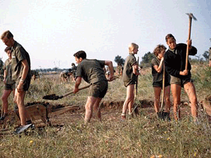 Život na radnim akcijama Ustajalo se rano i prvi dio dana su brigadiri radili raznovrsne fizičke poslove na terenu - trasi. Ali, to je bio samo dio aktivnosti. Po povratku u naselje bio je organizovan cjelodnevni i večernji društveni program, organizovane su sportske, kulturne i idejno-političke aktivnosti. Pohađanli su kino, foto i radio kursevi, škola za vozače, kursevi kozmetike, ikebane, saobraćajne kulture, elektrovarilački i daktilografski kurs i mnogi drugi. Ove aktivnosti su bile organizovane u okviru "tehničkog obrazovanja" omladinaca koje su provodile institucije republike, u kojoj je održavana radna akcija. Jedna od glavnih aktivnosti u brigadirskim naseljima bilo je i ideološko-političko i marksističko obrazovanje u kojem su brigadiri upoznavani sa osnovama marksističke ideologije. Učesnici ORA zvali su se akcijaši ili brigadiri. Brigadirka je, međutim, naziv za bluze koje su se nosile na akcijama. Na brigadirke su se prišivali amblemi. Kasnih 70-ih i ranih 80-ih akcijaška uniforma sastojala se od patika, majice, brigadirke i pantalona. Brigadirke su i poslije završenih akcija bile u modi. Na desnom rukavu nalazio se amblem brigade. Postojali su i bedževi sa logom brigade u kojoj su učestvovali akcijaši kao i bedž sa likom maršala Tita. Bilo je to vrijeme rada, poštenja, prijateljstva i zbližavanja mladih iz cijele Jugoslavije. Pjevalo se i veselilo na trasi, uz brigadirske večeri i logorske vatre. Bilo je to i doba ljubavi - za neke, prve, za neke velike i vječne. |
